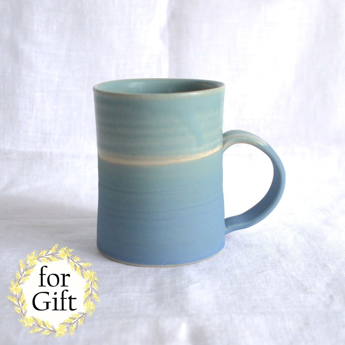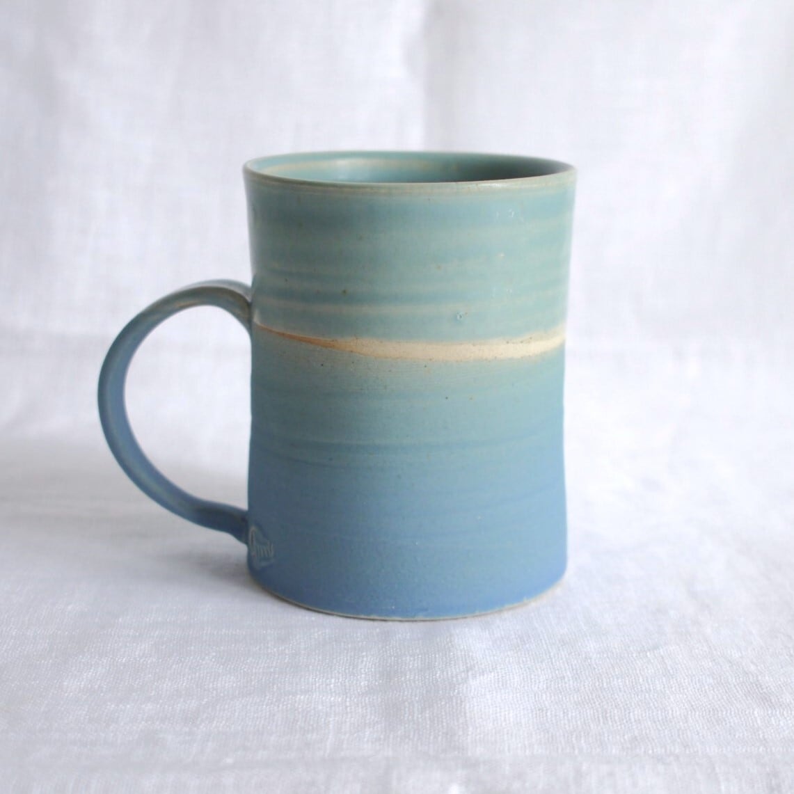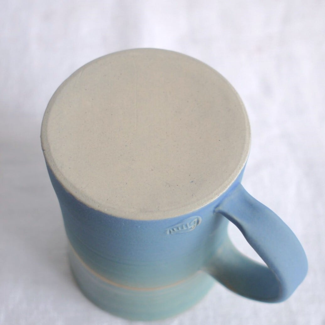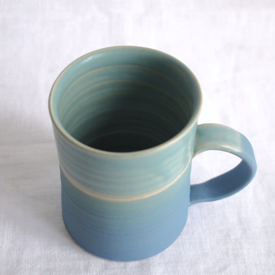 上半分と下半分に、質感の違った水色の釉薬2種を使用しています