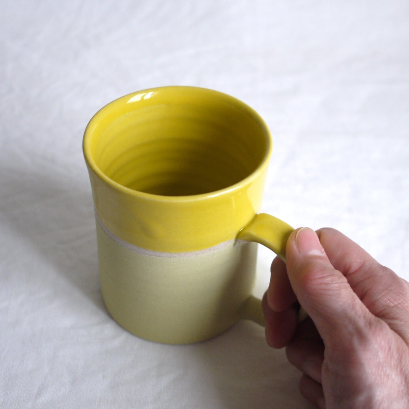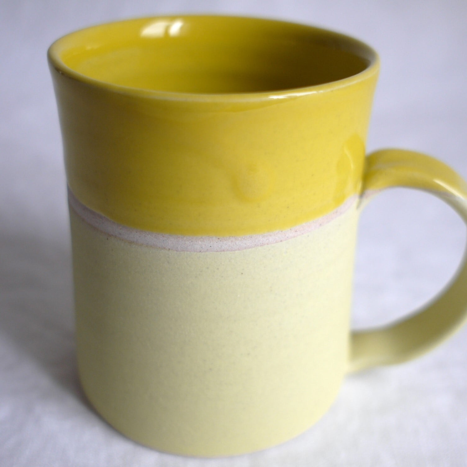 上半分と下半分に、質感の違った黄色い釉薬2種を使用しています