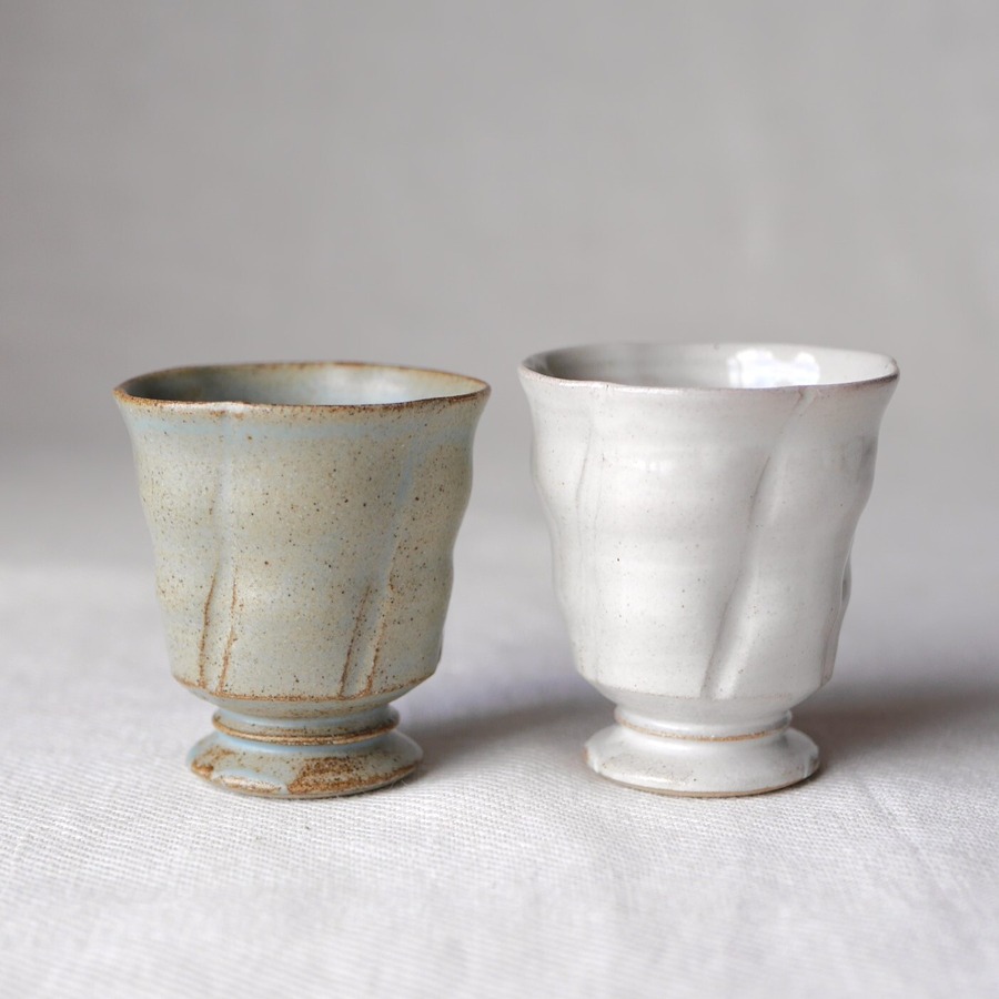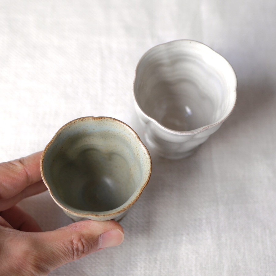 輪花酒盃(白、ブルー):各 直径約6.5㎝×高さ約7㎝