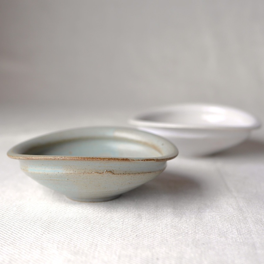 兜小鉢(白、ブルー):各 約13㎝×約11.5㎝×高さ約4㎝