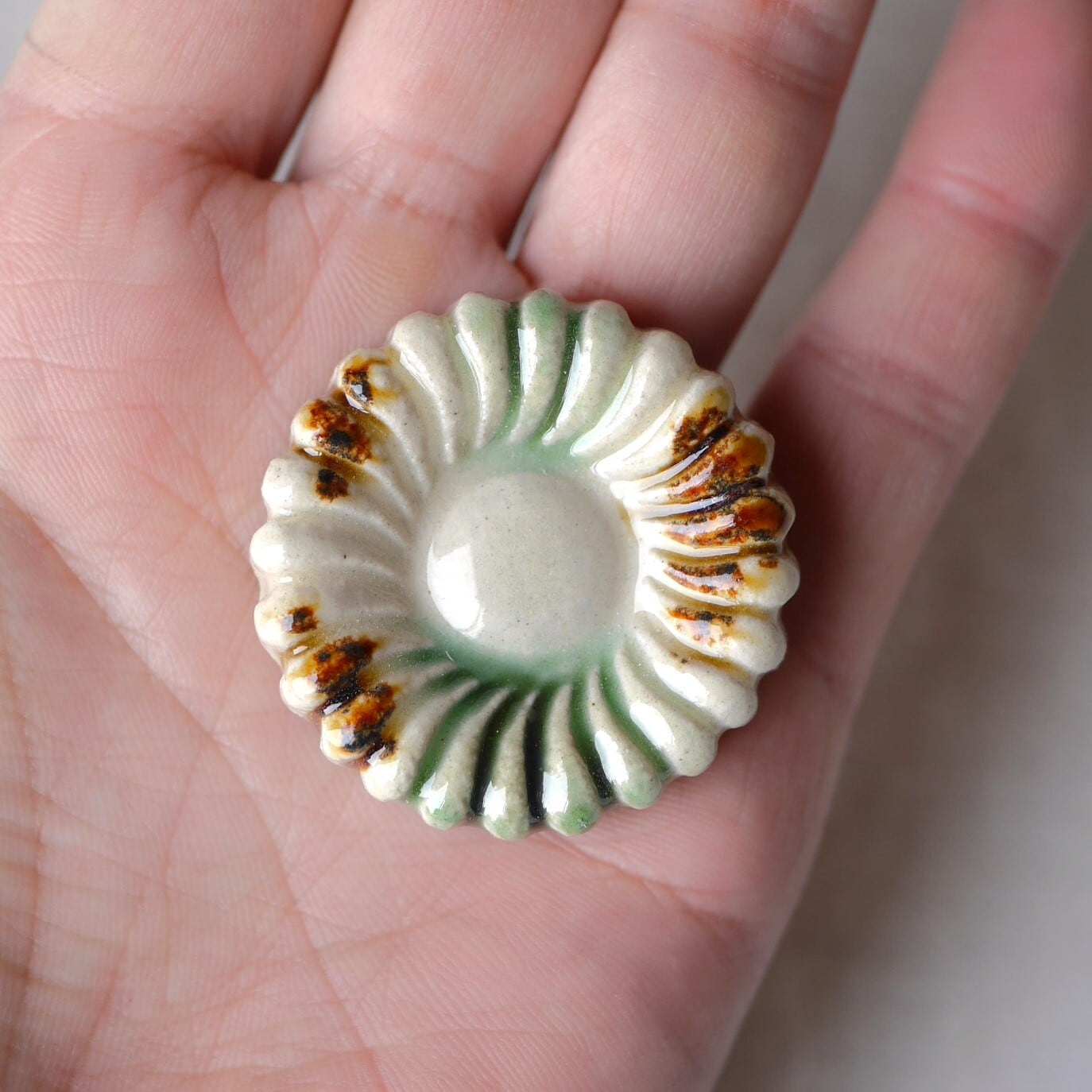 器には素材に含まれる鉄粉(黒点)、また焼成時には少々の歪みが生じます。