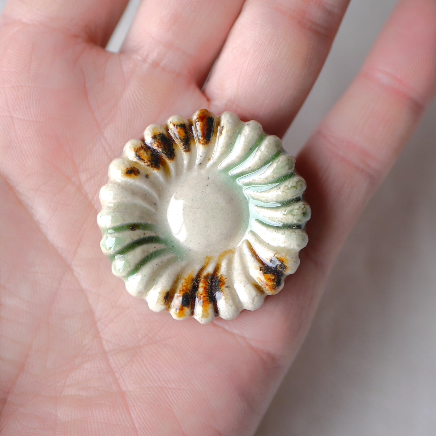器には素材に含まれる鉄粉(黒点)、また焼成時には少々の歪みが生じます。