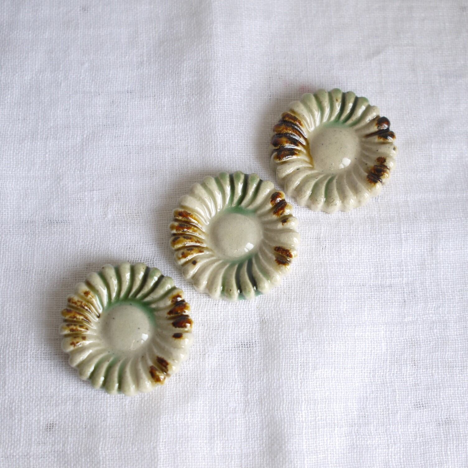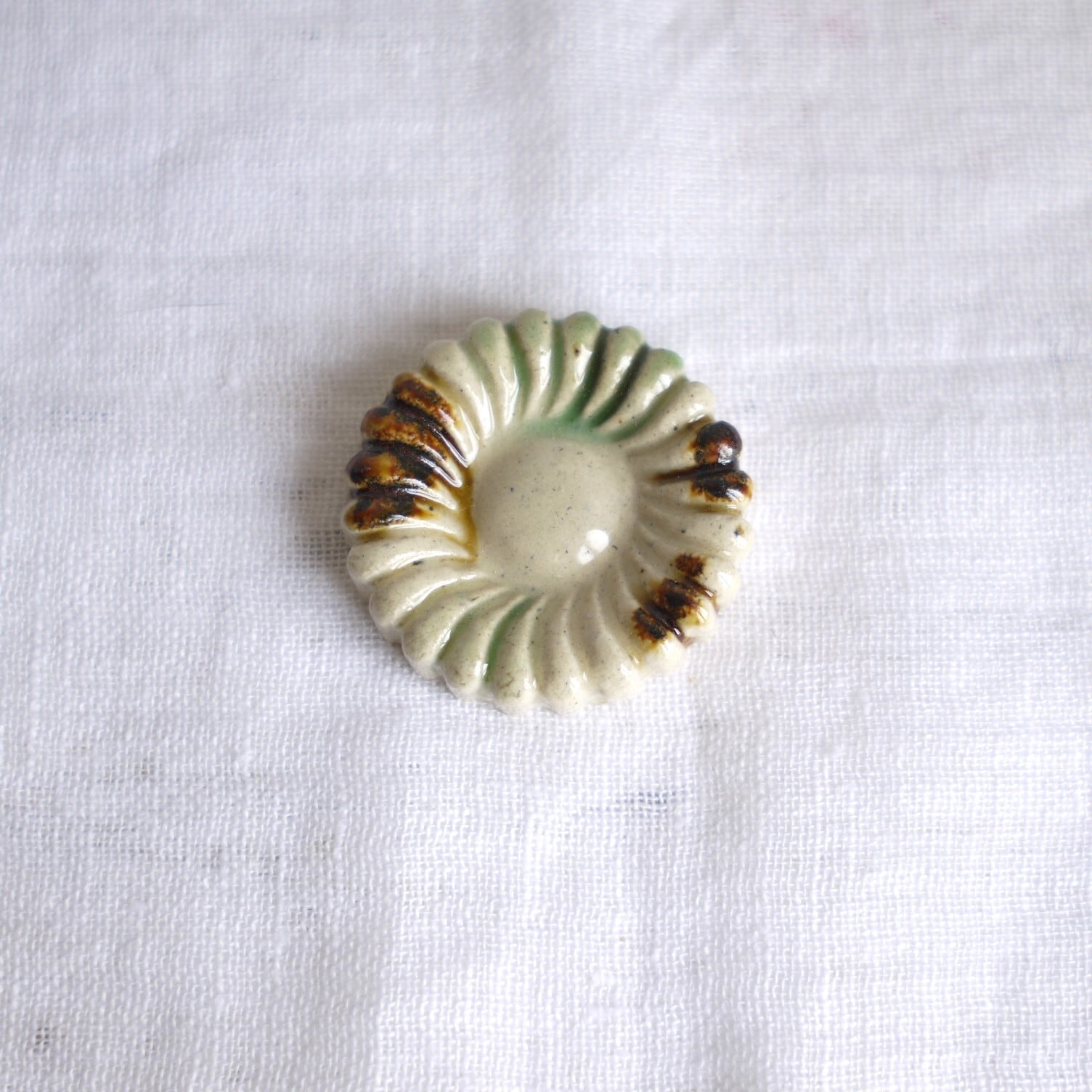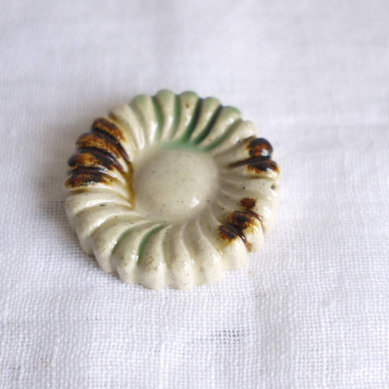中国の唐三彩をヒントに、緑釉と黒釉を散らし彩った、花形のお箸置きです。