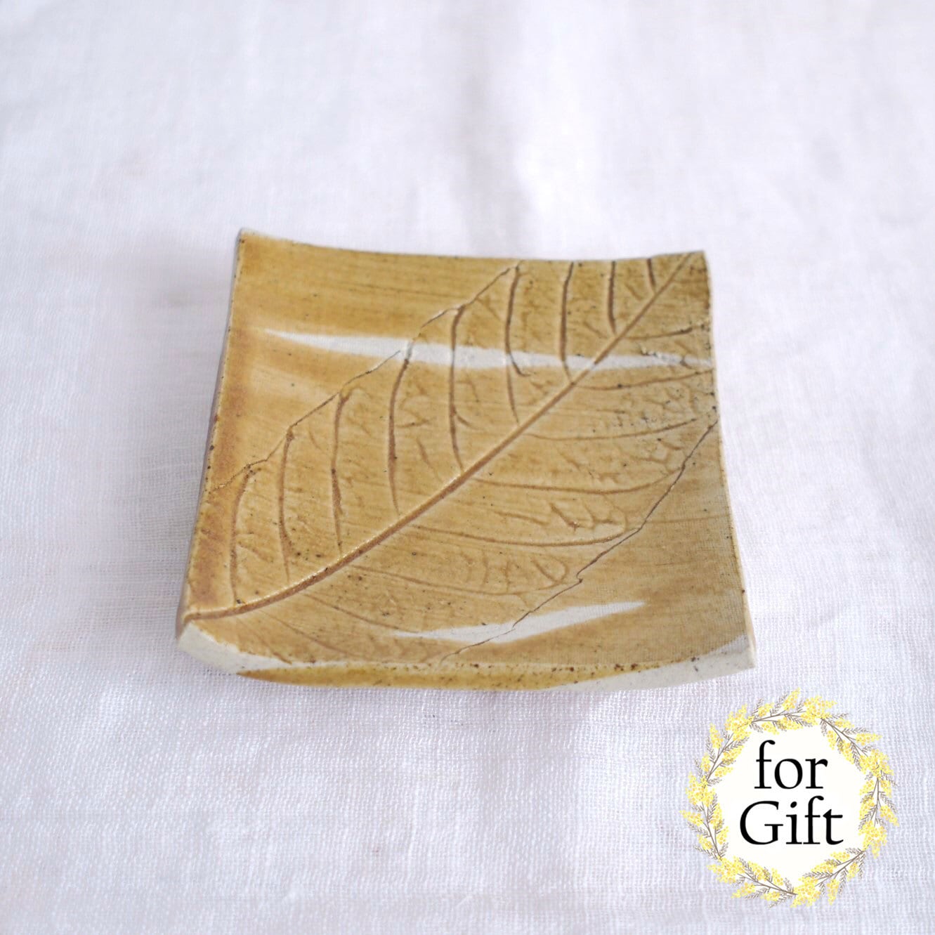 木の葉文四方小皿 Yellow