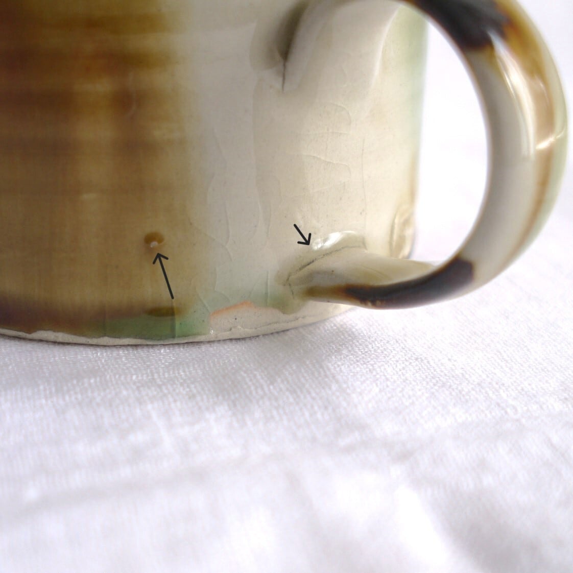 器には素材に含まれる鉄粉(黒点)、また焼成時には少々の歪みが生じます。