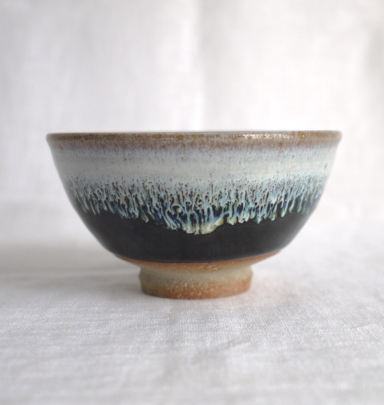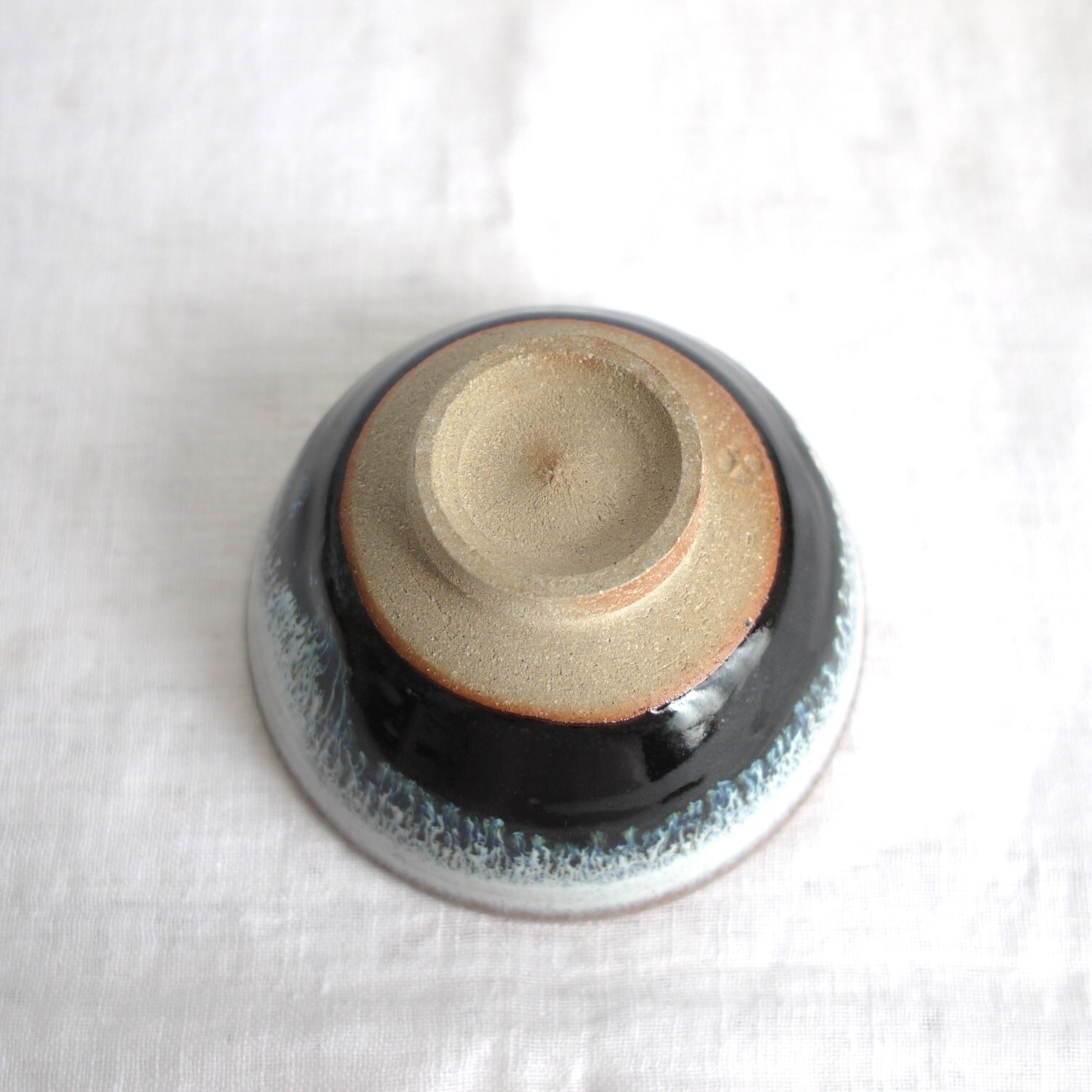 唐津焼の伝統的な釉薬“斑唐津”と“黒唐津”を、上下に配したものを“朝鮮唐津”と呼びます。2つの釉薬が混ざり合う景色が美しい、シンプルな飯碗です