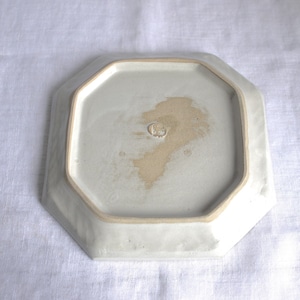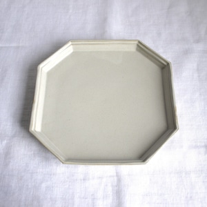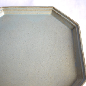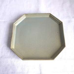 韓国のお盆のかたちを模した八角形のお皿。白とグレイッシュなブルーの二枚セット。手頃なサイズの中皿で、お魚や、パンを乗せたり、ちょっとした取り皿としても。とても使いやすいお皿です