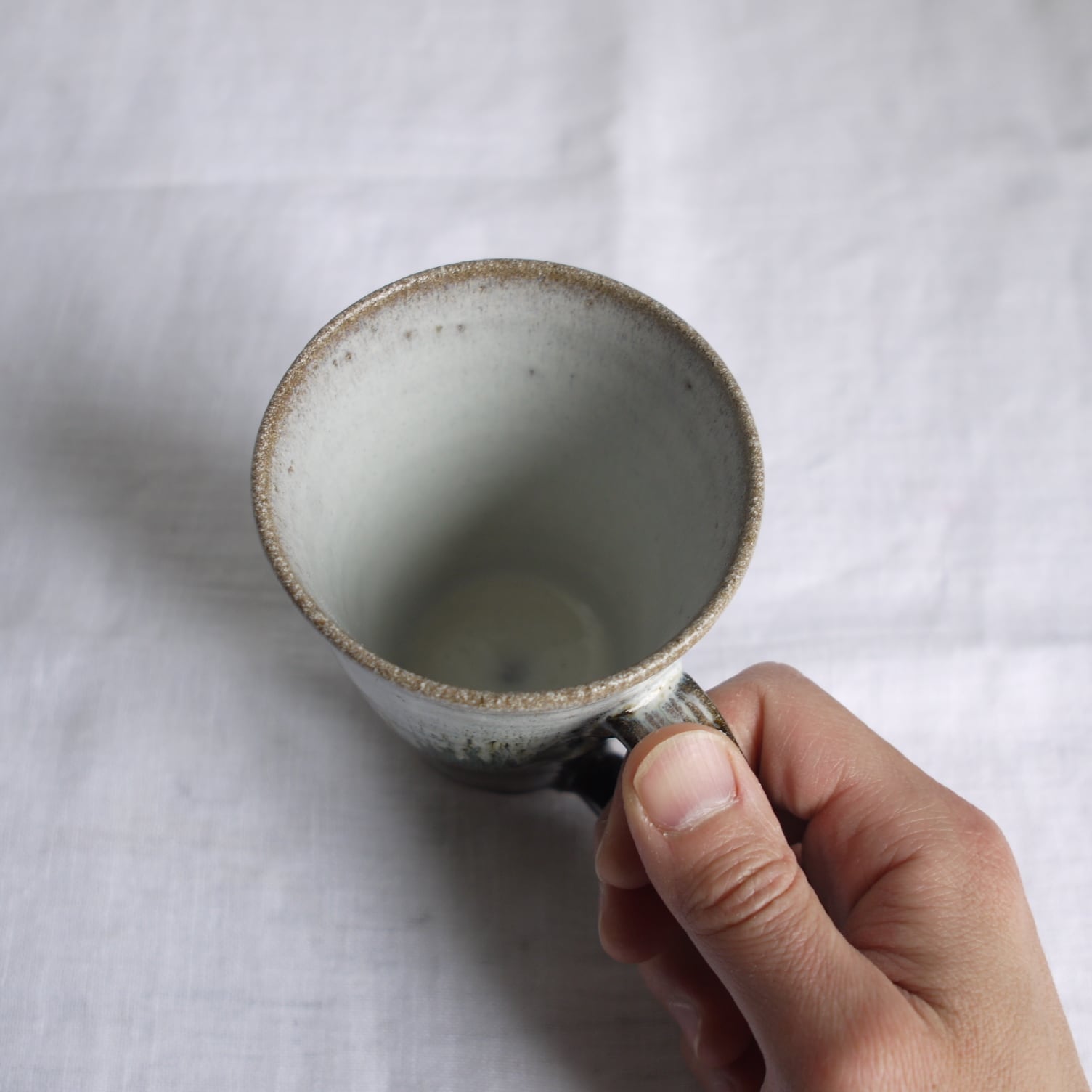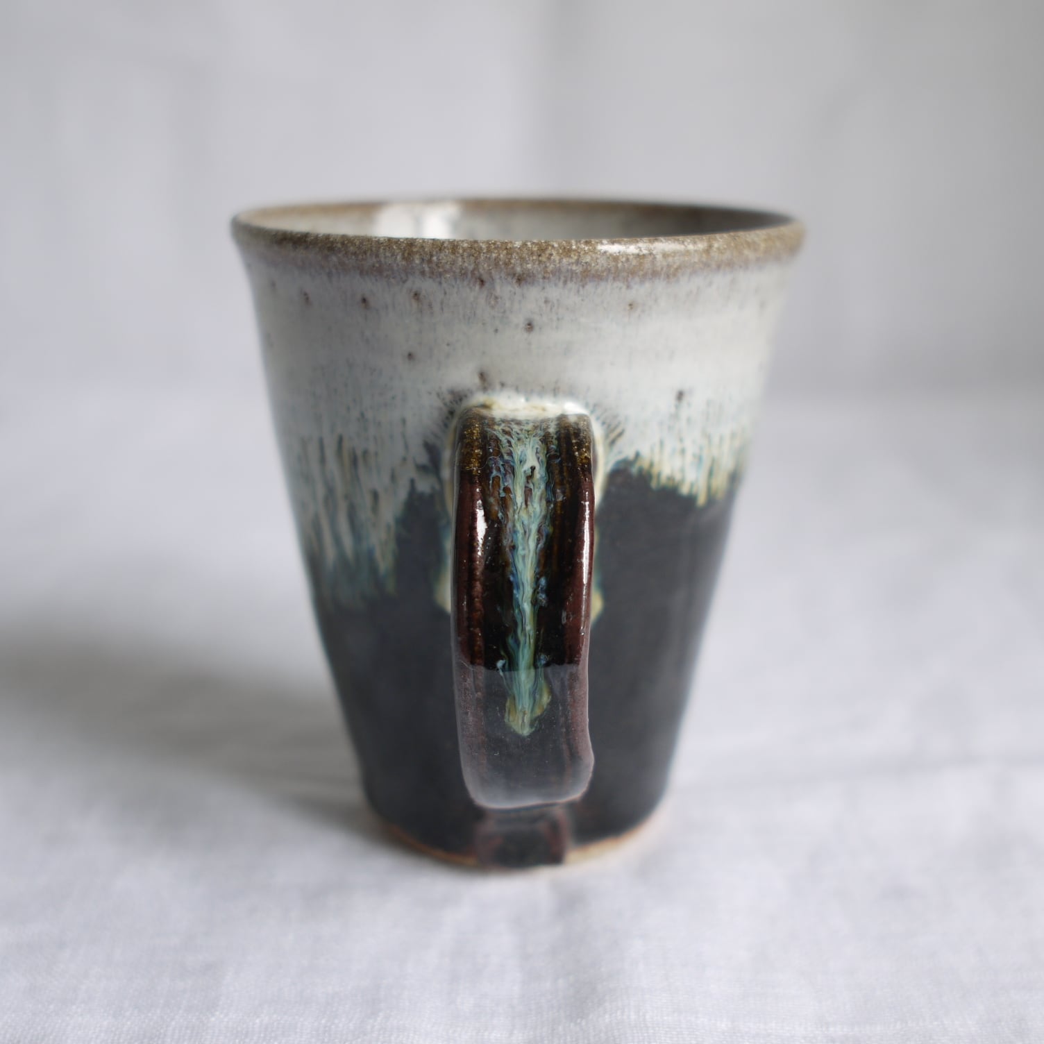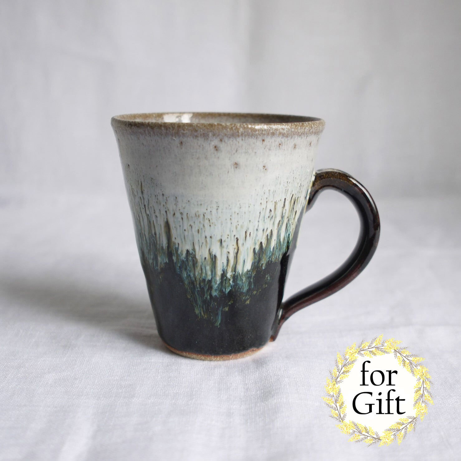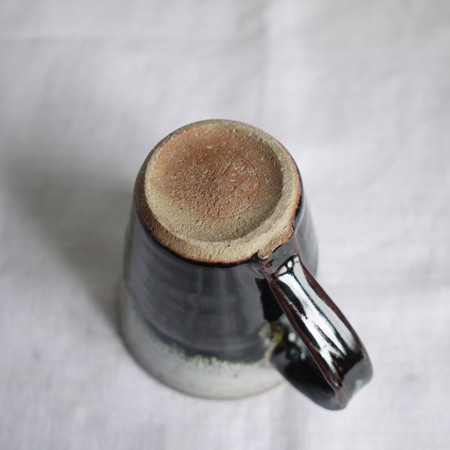 上下で白と黒の釉薬を掛け分けた、唐津焼の伝統技法“朝鮮唐津”のマグカップ