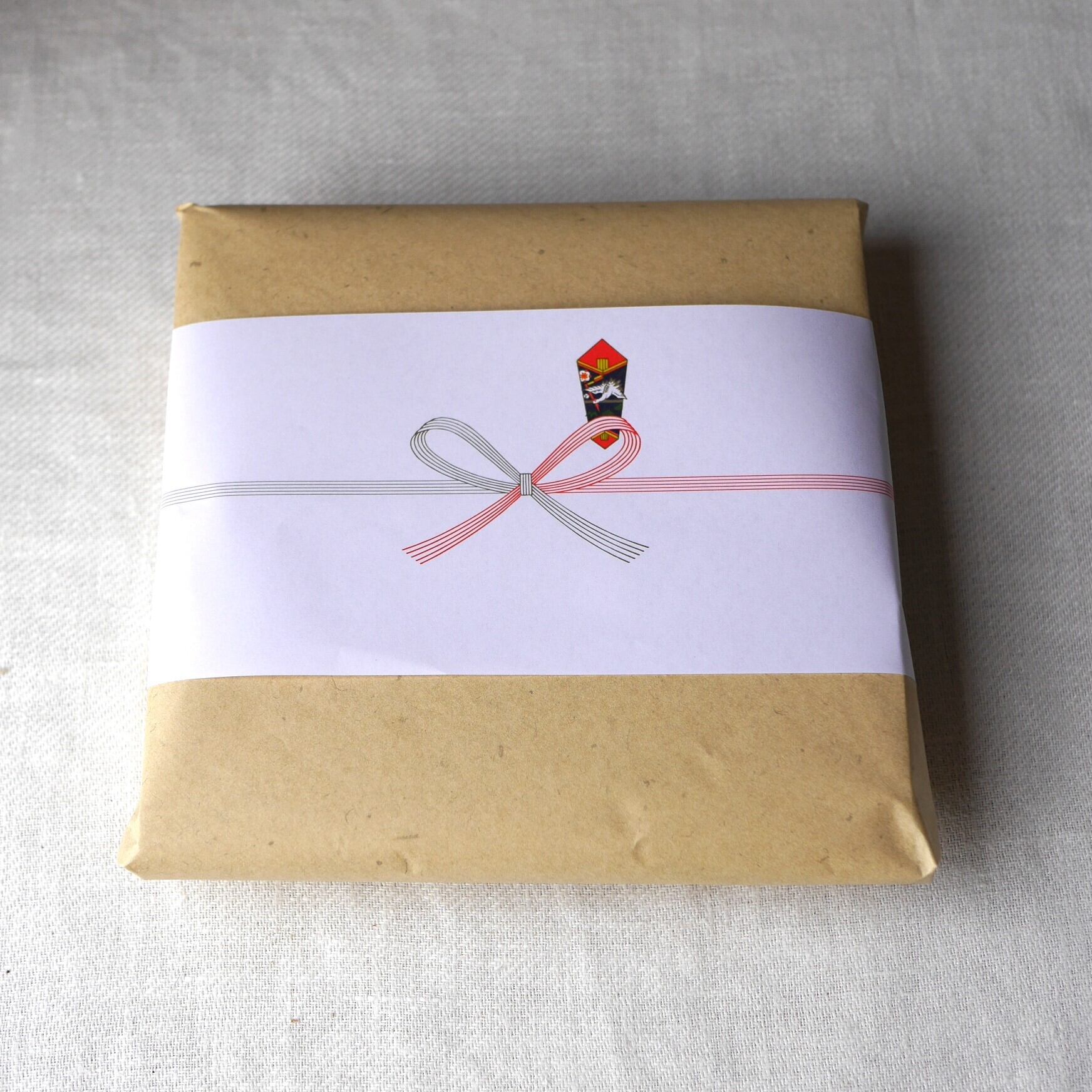 お皿や鉢の場合は、包装紙と帯でラッピングいたします。帯か御熨斗をお選びいただけます。